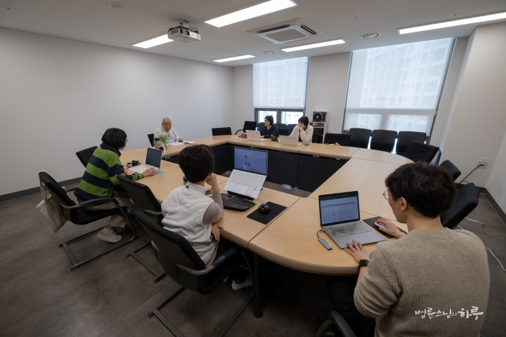 오후에는 몸을 추스르고 정토사회문화회관으로 향했습니다. 오후 1시에는 ‘세계 명상의 날’ 포럼을 준비하는 실무자들과 회의를 진행했습니다. 실무자들은 어제 회의 내용을 바탕으로 세부 프로그램을 보완해 왔습니다. 스님과 함께 행사 진행 방안을 다시 한 번 구체적으로 점검한 뒤 회의를 마무리했습니다.