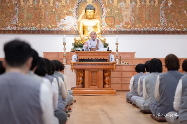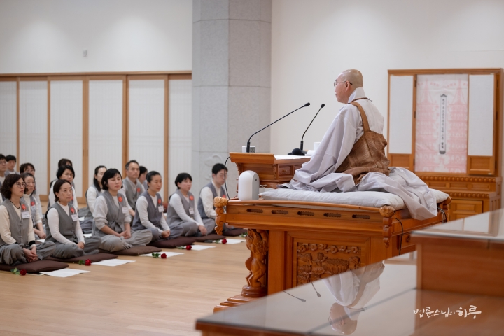 마지막으로 오계를 ‘나를 지키고 사회를 정화하는 최소한의 약속’으로 제시하며, 발심행자가 된다는 것은 권리만이 아니라 책임을 함께 지는 수행공동체의 주인이 되는 일이라고 강조했습니다.