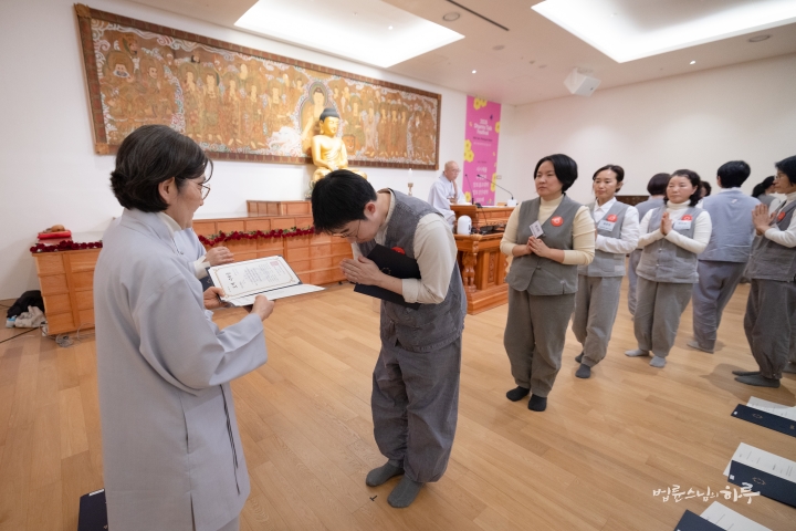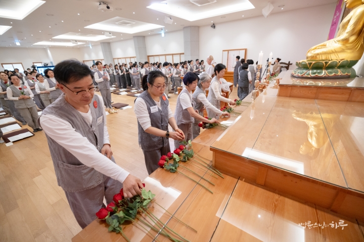 안녕하세요. 오늘은 지난 1년 동안 전법회원 교육을 수료한 분들을 위해 발심행자 수계식을 하는 날입니다.