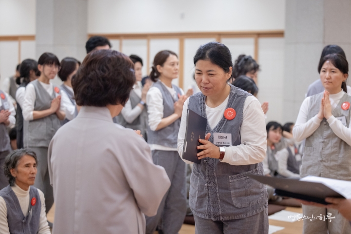 이어서 법사님들이 한 분 한 분에게 수계첩을 전했습니다.