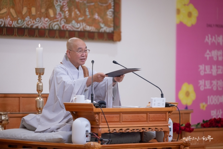 “오늘 전국 각지에서 수행 정진해 온 정토행자들이 부처님의 가르침을 따라 청정한 계율을 지키며 꾸준히 정진할 것을 서원하였습니다. 삼보에 귀의하고 오계를 받아 지키며, 수행자로서 성실하게 정진하겠다고 다짐하였습니다. 이는 참으로 소중하고도 귀한 인연입니다.