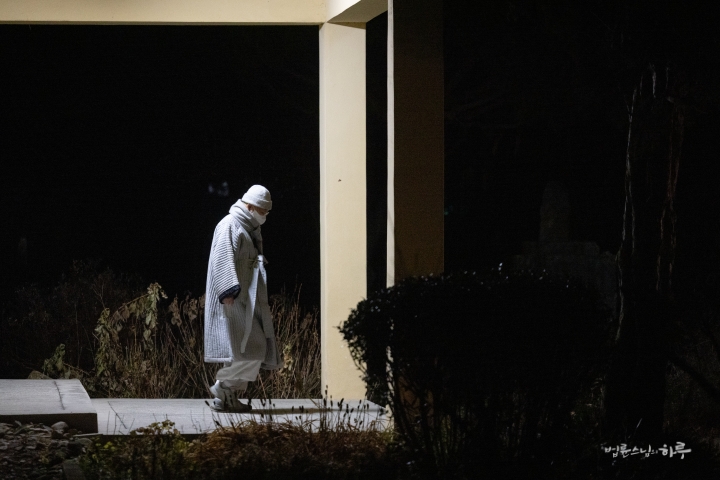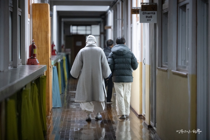 안 그래도 스님은 어제부터 허리 통증이 심해져서 휴식이 필요했는데, 마침 하루 종일 비가 온다고 하니 실내에서 휴식을 취했습니다.