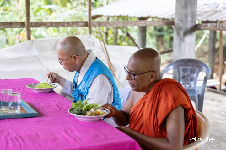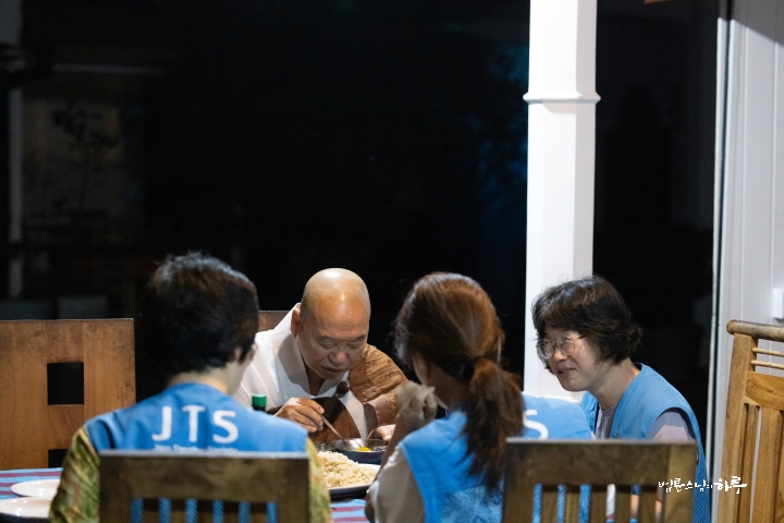 스님은 새벽 수행과 명상을 마친 후 오전 5시 30분에 숙소에서 아침 식사를 했습니다. 어제 점심에 남은 볶음밥을 데워 간단히 식사를 마쳤습니다.