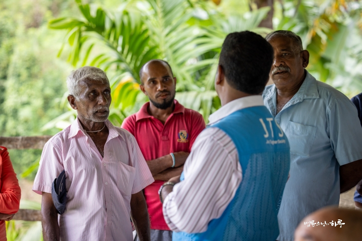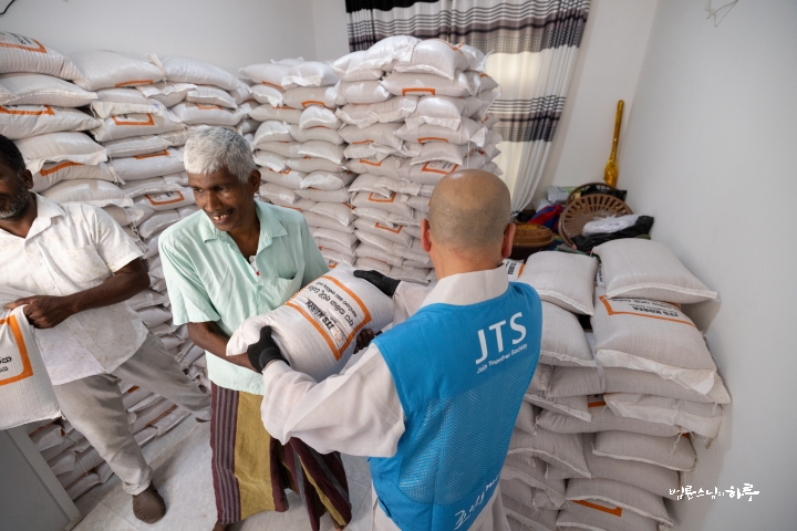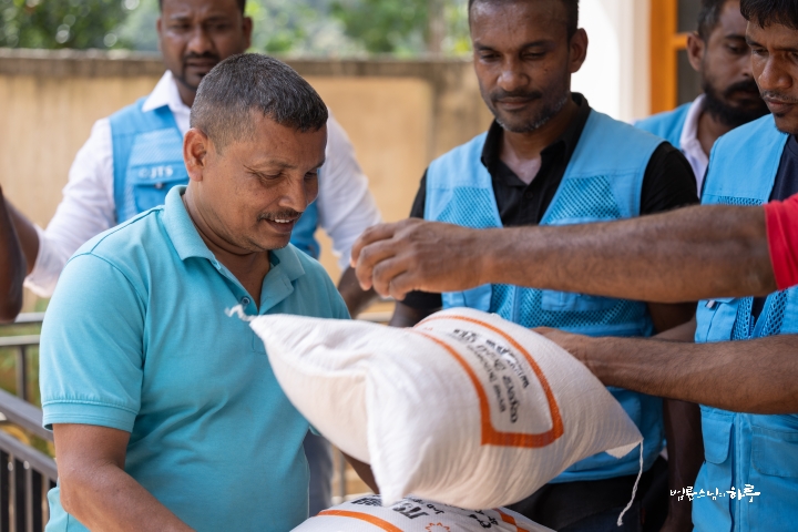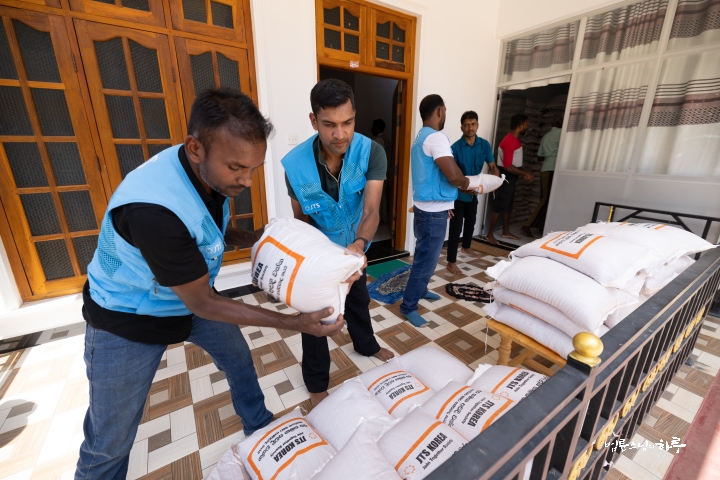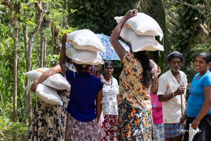배분 장소에 도착하자 스리랑카JTS 현지인 활동가들과 마을의 봉사자들이 뜨거운 햇볕 아래 분주히 배분을 준비하고 있었습니다.