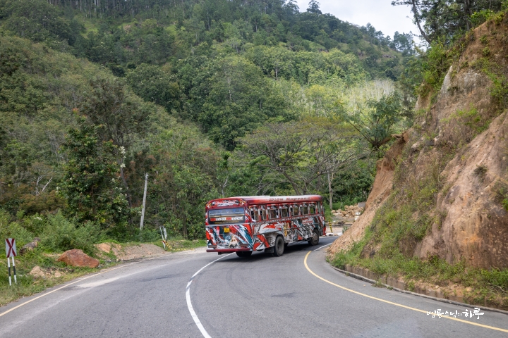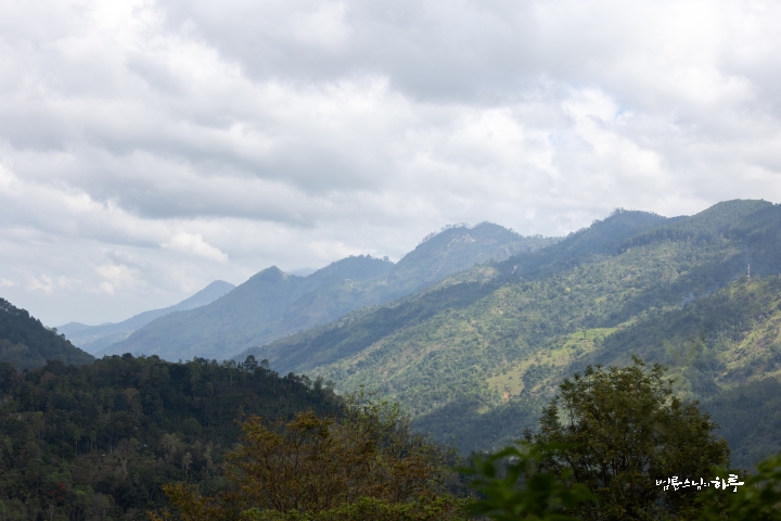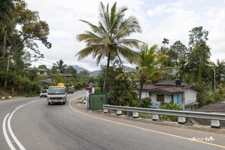 평지를 지나 우바주에 들어서자 오르막과 내리막이 굽이굽이 이어졌습니다. 스리랑카에서 차(茶)로 유명한 우바주의 구불구불한 산길을 따라 계속 달렸습니다.