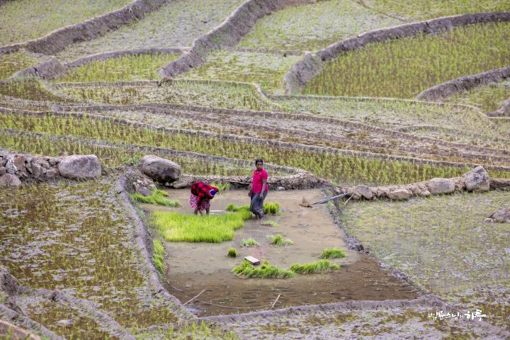 마을 사람들은 이 논에서 약 90가구가 이 수로 하나에 기대어 농사를 짓고 있다고 했습니다.