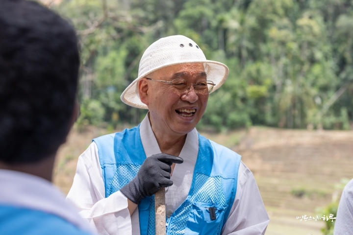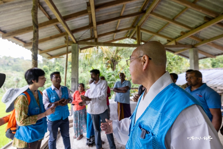 “JTS에서 지원하는 돈은 큰 기업에서 지원하는 돈도 아니고, 정부가 지원하는 돈도 아닙니다. 많은 사람들이 보시한 절 돈입니다. 일반적으로 절에 들어오는 돈은 대부분 다 절을 짓는 데 씁니다. 그런데 부처님의 가르침에 따르면, 중생의 어려움을 덜어주는 것이 곧 불사입니다. 절을 짓는 것보다 가난한 사람을 돕는 것이 더 중요하다는 뜻이에요. 그래서 JTS는 무너진 다리를 놓고 농수로를 보수하는 이 일을, 절을 짓는 것과 같은 마음으로 하고 있습니다. 그렇기 때문에 재료 하나라도 허투루 써서는 안 됩니다. 이 돈은 삼보정재(三寶淨財), 즉 절 돈이기 때문에 아주 아껴서 써야 해요. 그러나 꼭 필요한 곳에는 써도 됩니다.”