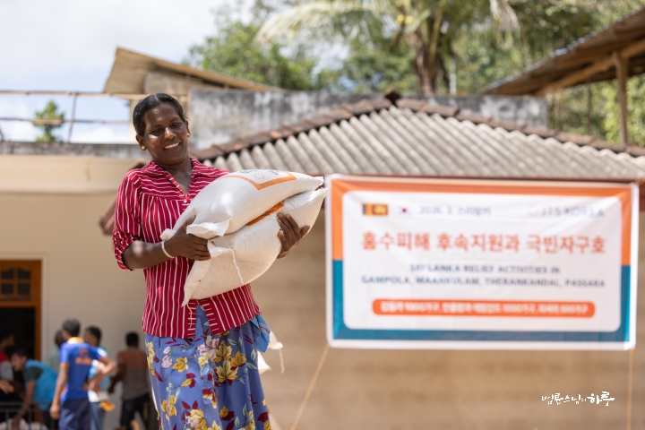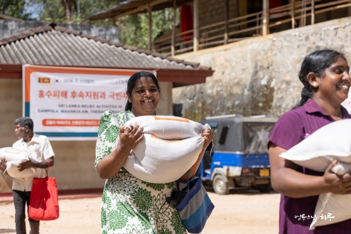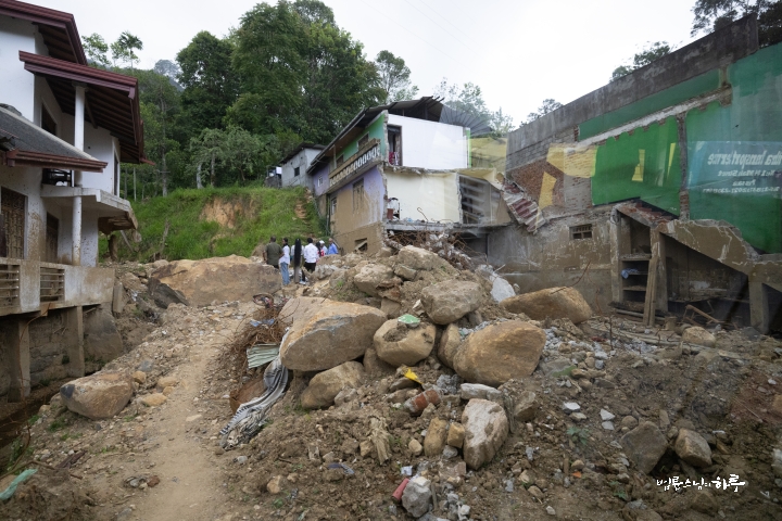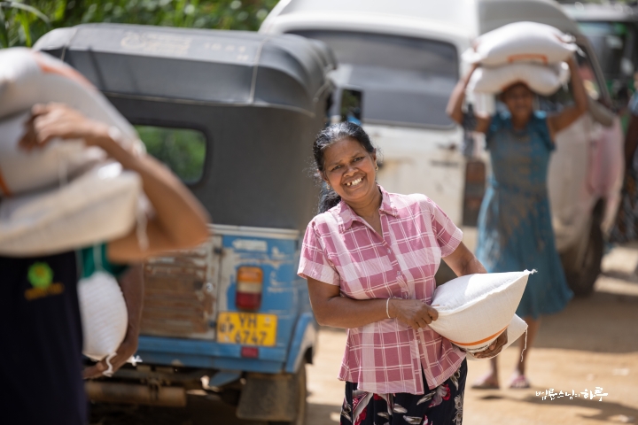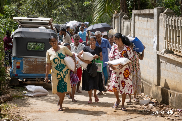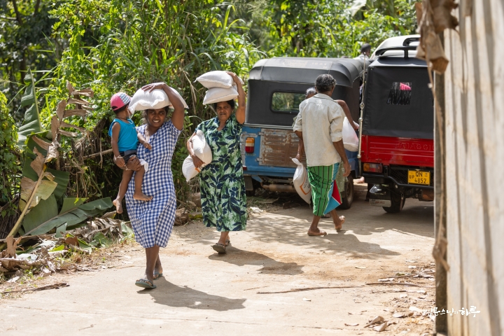 안녕하세요. 오늘은 스리랑카 파싸라로 가서 사이클론으로 무너진 다리와 수로를 살피고, 수해를 입은 500가구에 쌀을 전달했습니다.