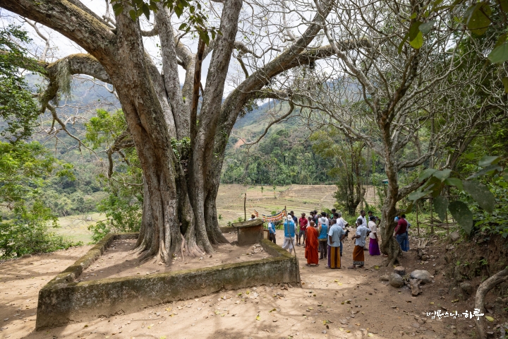 다랑논을 지나 큰 보리수 아래에 도착했습니다. 답사를 떠난 지 약 45분이 지나있었습니다. 온몸이 땀으로 젖었습니다.