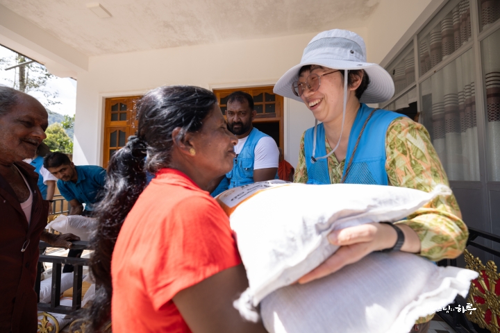 쌀을 받아 든 주민들은 환하게 웃었습니다.