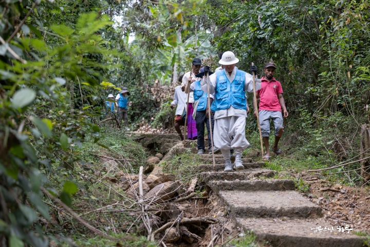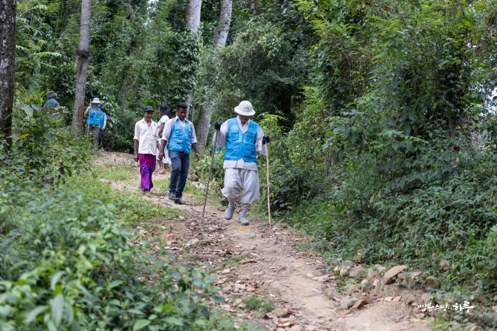 목을 축인 뒤 마을 주민들을 따라 보수가 필요한 길을 직접 걸으며 살펴보았습니다.