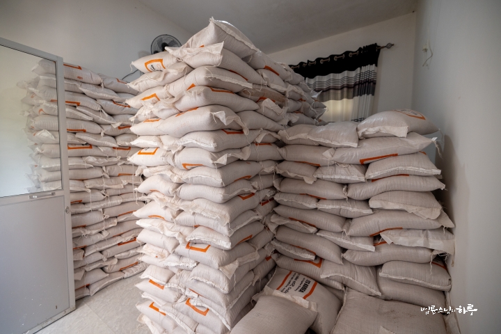 묵직한 포대를 머리에 이고 걸어가는 할머니, 두 포대를 번갈아들며 균형을 잡는 아주머니, 포대를 어깨에 걸치고 성큼성큼 걸어가는 젊은이. 사이클론이 지나간 마을 길 위로 쌀 포대를 안은 사람들의 행렬이 이어졌습니다. 포대가 무거울수록 웃음은 더 환했습니다.