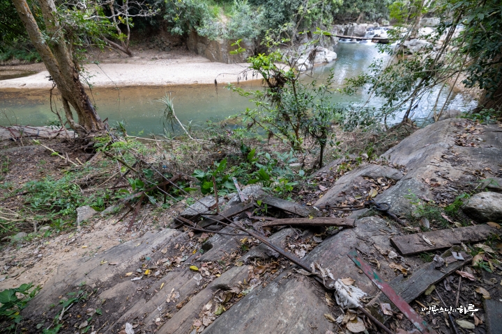 다리를 건너 조금 위로 올라가자, 원래 케이블 다리가 있었던 흔적이 남아있었습니다.