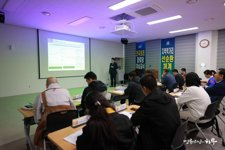 다시 강의가 시작되었습니다. 발표자들과 청중들이 궁금한 사항을 묻고 답해주는 시간이었습니다. 부탄 방문객들은 청양군에서 농업이 지속 가능할 수 있도록 해 왔던 노력과 활동들에 관해 관심을 보였고, 이에 대한 질문도 했습니다. 청양군에서 재배되는 먹거리들이 급식으로 활용되는 시스템부터 청양군 주민들이 주인으로서 의사결정에 참여할 수 있도록 하는 중간 시스템을 마련하는 것들이 필요하다는 이야기가 오갔습니다.