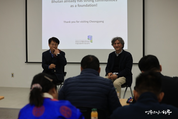 마지막으로 박진도 교수님이 어제 다녀온 홍성군의 사례와 오늘 방문한 청양군의 사례는 다르다는 것을 부탄 방문객들에게 설명해 주었습니다. 둘 다 대한민국의 한 군이지만, 한 곳은 농업환경 마을의 사례이고 한 곳은 지자체가 운영하는 사례여서 두 가지 다른 경우임을 한 번 더 정리해서 알려주었습니다.