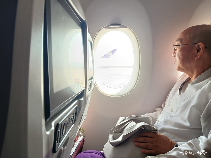 안녕하세요. 스님은 어제 비행기를 타고 밤새 인도에서 방콕을 경유하여 한국으로 이동했습니다. 스님은 경유지에서 비행기 탑승을 기다리는 동안에도 원고 교정을 보았습니다.