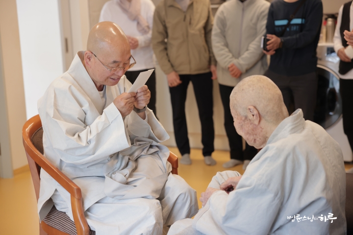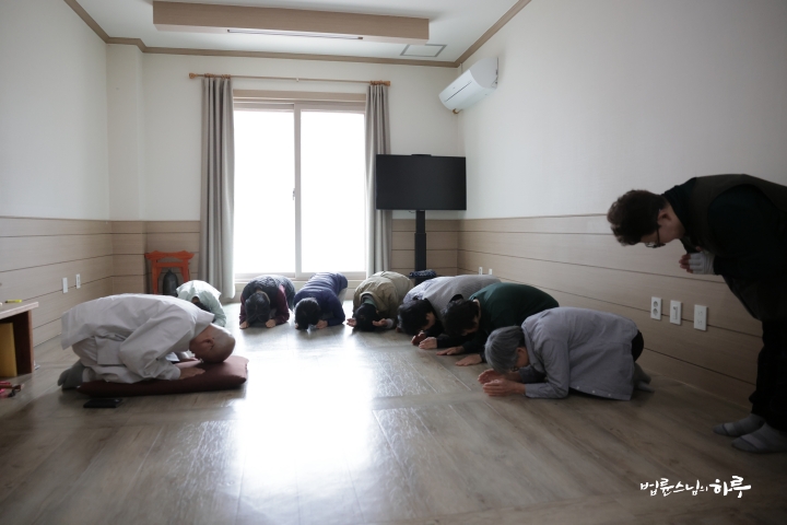 “스님, 문경 공동체 대중들이 스님께 인사드리기 위해 밖에서 기다리고 있습니다.”