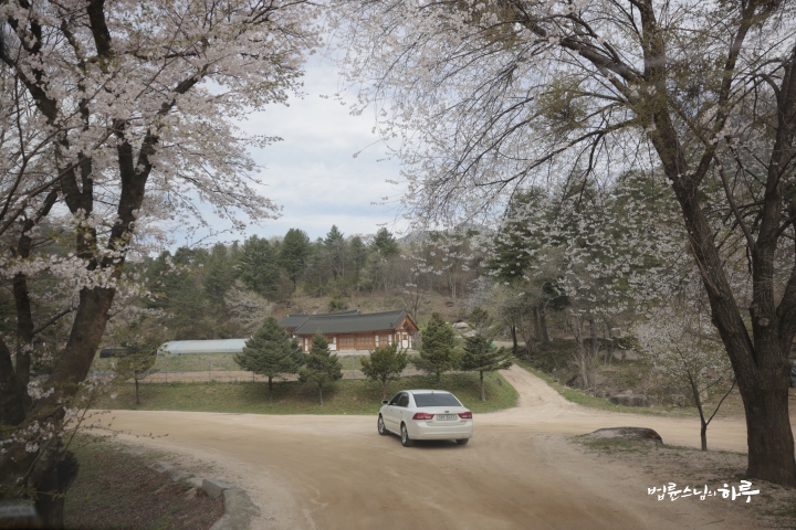 저 멀리 희양산이 보였고 곧 문경수련원 앞을 지나게 되었습니다. 문경수련원 입구에는 유수스님이 기다리고 있었습니다. 스님은 앞서 움직이는 유수스님의 차량을 따라 봉암사 안으로 들어갔습니다.