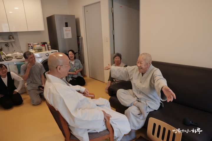 “저는 필요한 게 아무것도 없습니다. 오늘 스님을 보는 것만으로도 마음이 만족스러워서. 이렇게 춤이라도 추고 싶습니다.