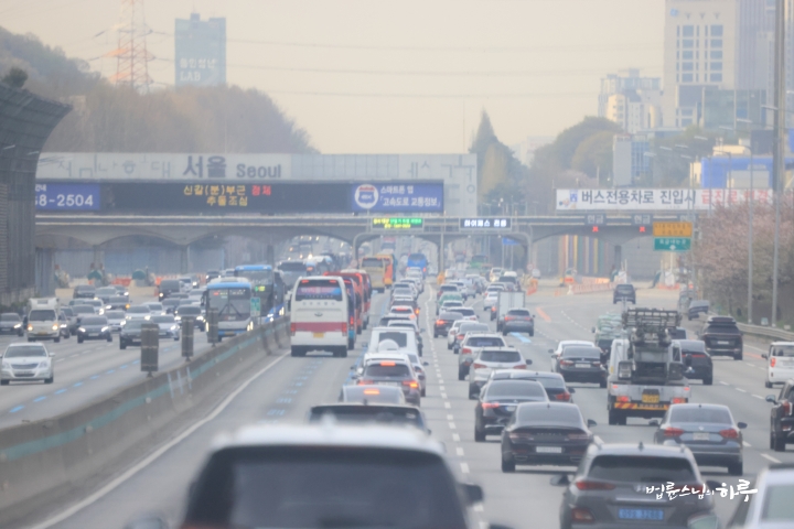 마침, 출근 시간과 겹치게 되어 고속도로가 많이 막혔습니다.