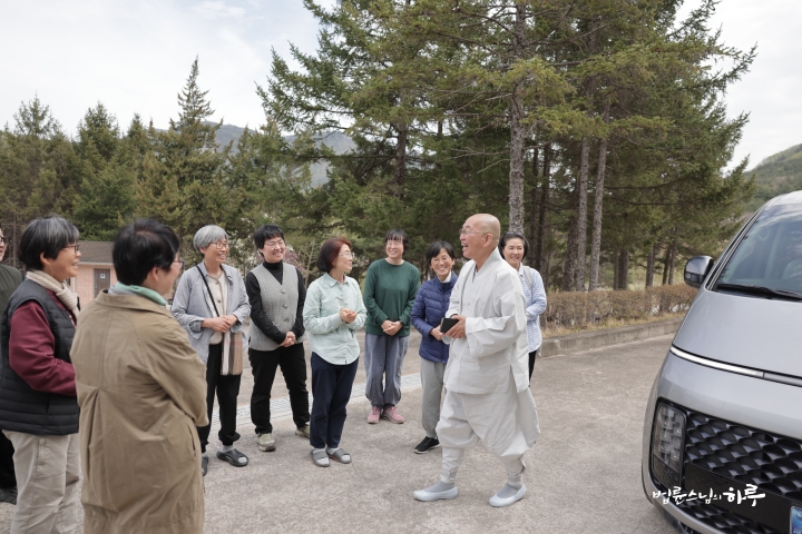 스님은 연수원 법사님들이 정성스레 준비한 점심 공양을 드시고 잠시 휴식을 했습니다. 오후 4시가 되어 ‘행복한 대화’ 대구 강연을 위해 연수원을 출발했습니다.