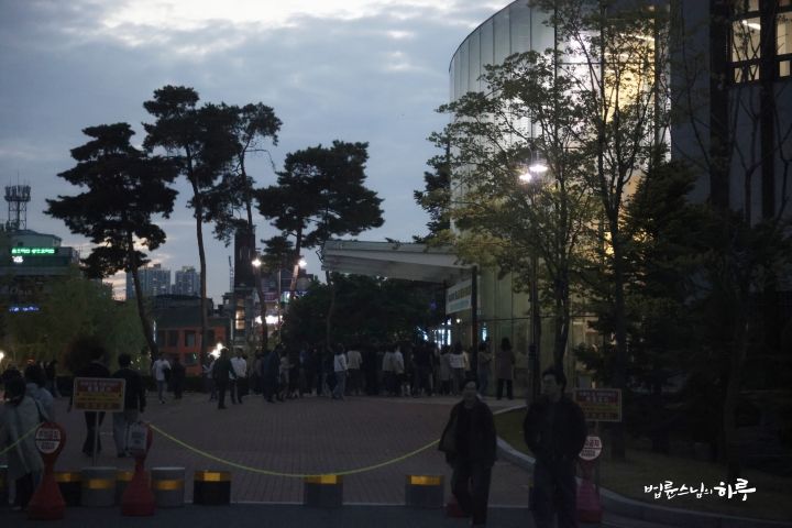 30분가량 책 사인회가 이어지고 스님은 오늘 봉사를 해준 행복시민들과 함께 기념사진을 찍었습니다. 모든 일정을 마치고 두북으로 이동하려는데 경북대학교 대외 협력팀 관계자분들이 스님께 인사를 드리기 위해 기다리고 있었습니다. 오늘 경북대학교에서는 개교 80주년 기념으로 강연 장소를 무료로 대여해주었고, 청중들의 주차비까지 무료로 제공해 주었습니다.